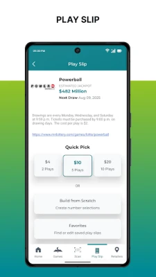 • Create and save digital play slips for lotto games