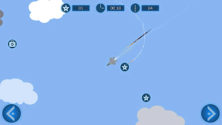 Use the simple flight control to fly your airplane and avoid the missiles. Make them collide with each other and collect stars to increase the final score.