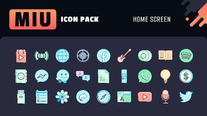 MIU Icon Pack - Themes Pixel is outlined in the shape of the most popular applications. Each icon is handmade with simplicity in mind. The center of the border is transparent, allow you to show your wallpaper below the icon. The icons lineare which means they are HD or high enough resolution to get cool looking icons lined up on any existing device.