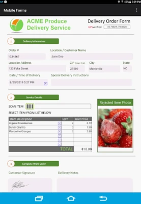 - Include enhanced media such as photos, videos, barcodes, GPS coordinates, signature capture, drop down menus, date / time stamps, automated calculations, and much more