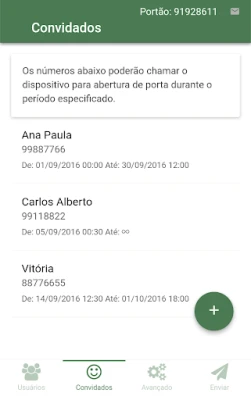 Uma das principais funções do produto é a lista de convidados, nela você poderá adicionar até 20 contatos que se tornam usuários com tempo programado com a permissão para abertura da porta. Tornando simples a entrada de convidados, amigos, parentes ou empregados em eventos, festas, residências e condomínios.