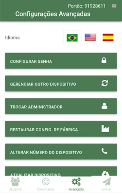 * Configuração de lista de convidados para acesso ao dispositivo;