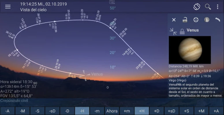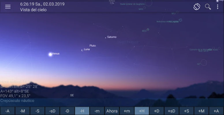 Mobile Observatory displays the current view of the sky, the times of rise and set of any object, current positions, and apparent views of the planets, twilight times, moon phases, celestial events (such as conjunctions and eclipses), a 3D-view of the Solar System and much more. Use Live Mode to point your device to the sky and find out what you are looking at using the orientation sensors or get daily notifications of celestial events.