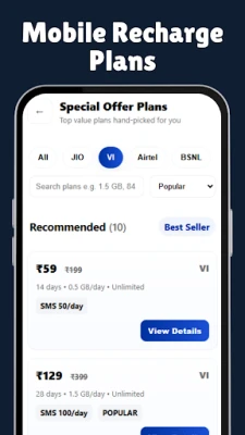 Easily view and manage all available mobile recharge offers in one place. Our app provides information on recharge plans, discounts, and offers—without processing any payments.