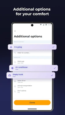 • Order history allows you to repeat the trip or go to the opposite direction quickly