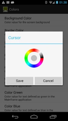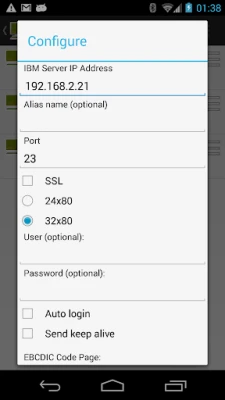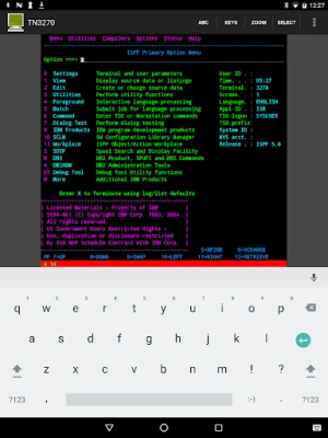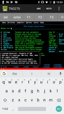 - Supports all standard 3270 emulation features - Support Tablet size devices. - Alternate screen size (24x80 or 32x80) - SSL (Secure Socket Layer). Uses SSL included with the Android OS. - Auto login - Can handle 20 different configurations - F1-F24 keys - Support for 9 different EBCDIC code pages - Colors can be customized - 2 finger zoom - Support for Barcode scanner from ZXing (camera scanner)