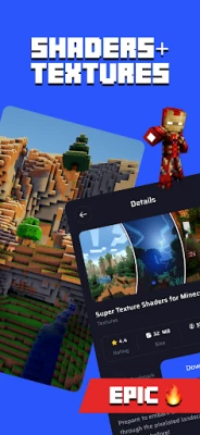 ๐ Stunning Textures & Shaders: Enhance your Minecraft PE graphics with top-notch textures and shaders. Experience the game like never before with realistic visual shaders that bring your creations to life.