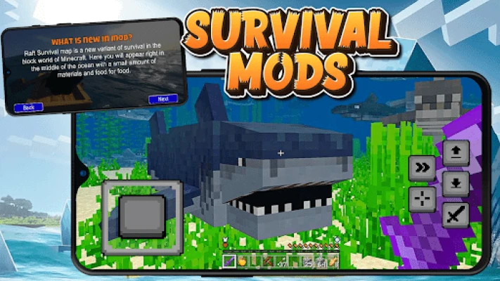 Hunt sharks, explore the underwater world, equip your character with armor and weapons and find an uninhabited island with new items, be careful because more than 30 unique mobs appear in the game that can be aggressively disposed towards you and can attack.