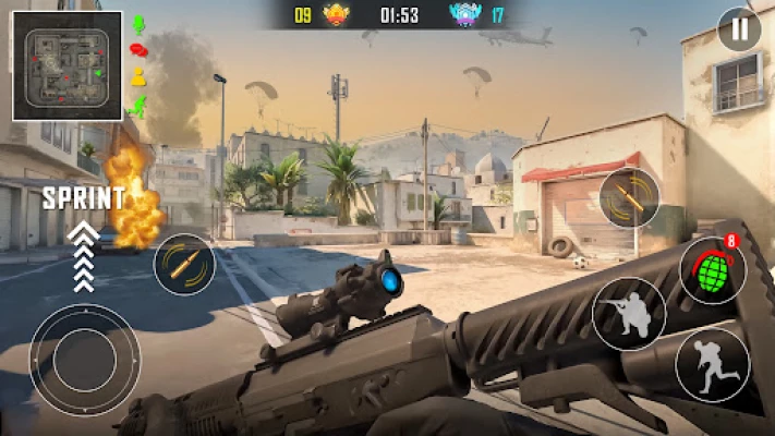 Sniper FPS games are multiplayer open-world games where the victory depends on the survival of the sniper squad. In such anti terrorist activities, you being a shooing master kill all the terrorists in multiplayer, 4v4, 5v5, in FPS games and protect your army squad in such shooting battlegrounds. In multiplayer shooter games choose your best shooting equipment like sniper rifles, machine guns, & shotguns, and kill all the terrorists in the action-packed anti terrorist gun games 3d.