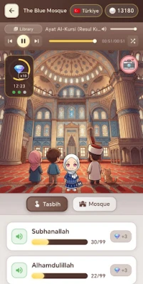 A unique feature you won't find in any other dress up game! Visit the mosque, listen to peaceful Quran recitations, count your tasbih, and earn special rewards. A calming, beautiful experience that brings Islamic values to life in a fun and respectful way.