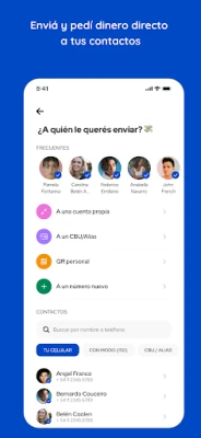 - Envía y pedí dinero a cualquiera de tus contactos de forma rápida y segura, a través de un número de celular. Sin CBU ni Alias.
