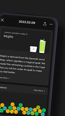 After recording your emotions, check out your very own cocktail that Mojitto concocts with your daily emotions!