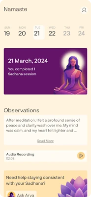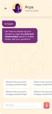 Unveil Vedic Secrets: Converse with Arya to gain profound insights into Vedic mantras. Personalized Spiritual Guidance: Receive tailored meditation session and advices based on Vedic wisdom. Holistic Health: Integrate Vedic principles for a life of balanced well-being.