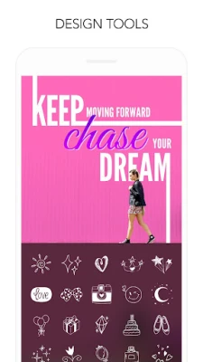 • Design Tools: Text, Stickers, Background Patterns