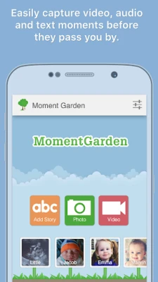 Moment Garden helps you save and relive your baby’s special moments and privately share them with your closest family and friends. With a single click, you can even turn your child’s memories into a Moment Book, a beautifully printed photo book - that baby book you never had time to finish! Don't risk losing any stories, pictures, videos or funny things your children say: start building your Moment Garden today!
