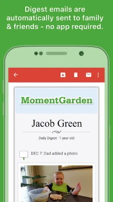Moment Garden is simple to use, private and centered around your child. Only the people you invite can view or add memories to your child's garden. When you add new memories, your family and friends will receive the latest pictures or stories right in their inbox. Grandparents LOVE seeing the moments in their email. This will absolutely make their day!