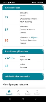 - visualiser votre carrière, quelles que soient vos activités (fonctionnaire, salarié, indépendant...), et vos droits à la retraite (nombre trimestres et de points cotisés)