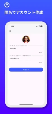 アカウントは匿名で作成できるため、プライバシーを気にせずに利用できます。後から表示するアイコンやユーザー名を変更することができます。気軽に始められる匿名性の高いチャットを提供します。