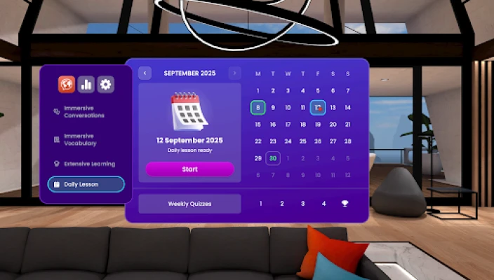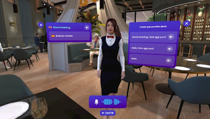 Experience the most advanced way to learn languages from the comfort of your couch. Mondly VR uniquely complements Mondly's mobile language learning app, enabling you to refine your speaking skills. You'll get instant feedback on your pronunciation, suggestions that enrich your vocabulary, and surprises that transform language practice with Mondly VR into a one-of-a-kind experience. Join our lifelike characters in a fully immersive language journey!