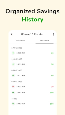 📈 Smart Savings Tracker – Monitor every contribution with a clear and simple savings tracker. Whether it’s daily deposits or occasional additions, Money Saver helps you build positive saving habits without stress.