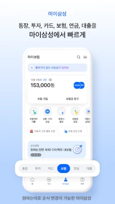- 마이보험 : 삼성금융 보험 정보와 월 보험료를 한 눈에 조회하고, 보험금 청구도 편리하게 가능해요.