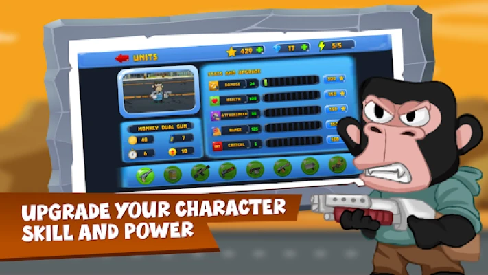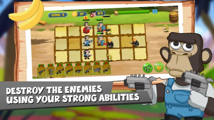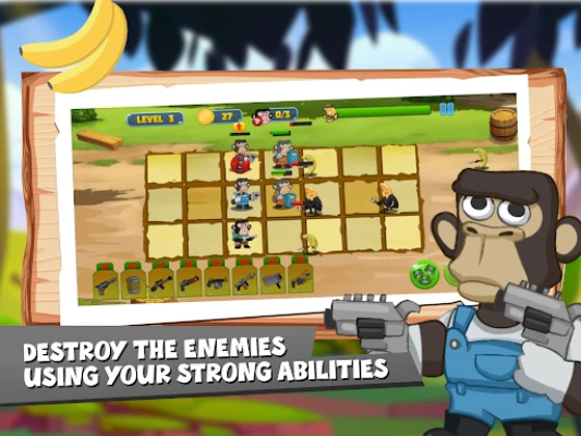 You take command of an elite squad of primate warriors, each with unique skills and powerful weapons, ready to defend their homeland. From fearless holders who block enemy advances to expert snipers picking off threats from afar, every ape plays a crucial role in the battle. Wield devastating firepower with bazooka apes, unleash rapid attacks with machine gun-wielding monkeys, and deploy special units with incredible abilities to turn the tide of battle.