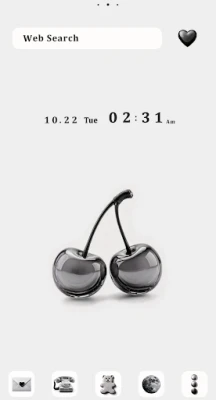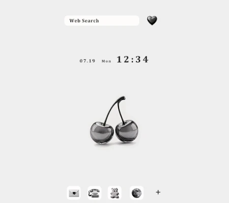 A theme featuring a stylish wallpaper of cherries and stylish photo icons and widgets that can be customized.