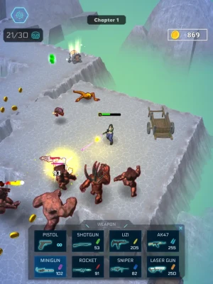With Monster Shooter RPG, choose your own path, explore various weapons, and become a leader in the struggle for survival. Defeat creatures, collect coins, and fight to survive in this dark world!"