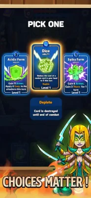 Card battler mechanics are enhanced with colorful visuals and striking animation effects. Each hit feels satisfying as your hero’s power is reflected through strong graphics. 2D enemies are carefully hand drawn and animated that suits the general tone of the game’s dungeon exploration and adventure theme.