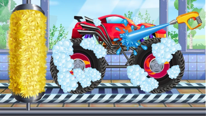 Your truck got dirty after the race? No problem! Go to a car wash, soap the car with bubbles, wipe it all over with a soft brush, and clean with water. Now your monster car is ready for the next competition!