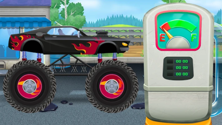 Fuel your monster truck at a gas station. Just insert a pump nozzle and tap multiple times on the pump to fill up the petrol tank.
