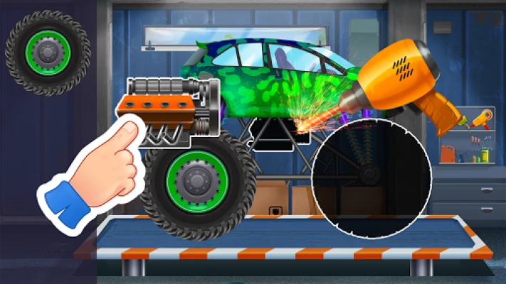 Assemble your own monster truck! Just take a part of the vehicle and move it to a suitable place. Fun and easy like solving a puzzle!