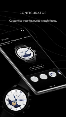 Choose and adapt a watch face that reflects your personal style with our configurator. Customise hands, colours, indicators, and more. Organise and manage your watch faces right within the app.