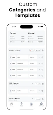 Custom Categories – Organize fixed & variable costs your way.