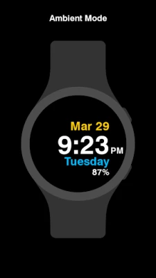 This is a bold and clear watch face for Wear OS smartwatches that is very easy to read with just a quick glance at the watch face.
