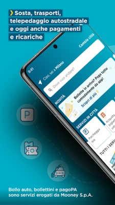 Sosta, trasporti, telepedaggio autostradale e oggi anche pagamenti e ricariche
