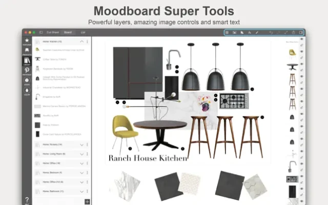 Create stunning, fast & smart design boards, material boards, furniture boards, fashion boards, graphic boards or branding boards using Moodboard Magic Tools.