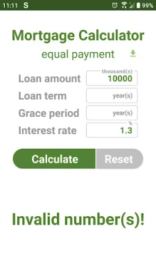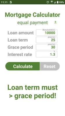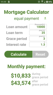 In this app, "grace period" means the period with interest-only payments, without paying off the principal.