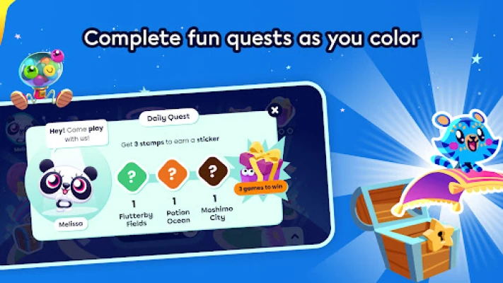 Collect stickers and stamps each day that can be used to decorate your coloring pages as you create. The more you play, the more themed sticker packs you can earn and add to your artworks!