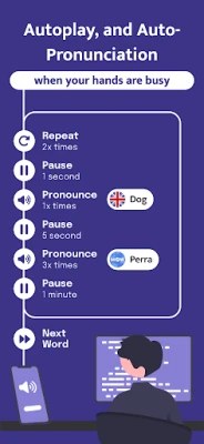 - Flashcard autoplay and auto-pronounce loops over your flashcards for times when you are multi-tasking and cannot use your hands for an effortless hands-free learning experience (so you can learn even when working, watching a movie, or doing chores)