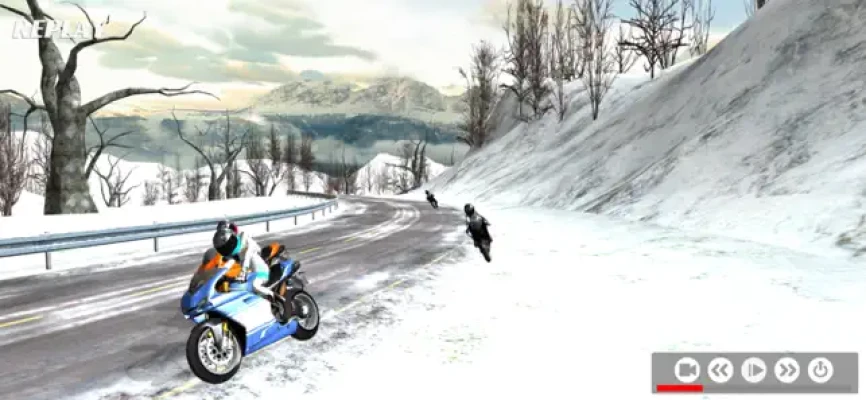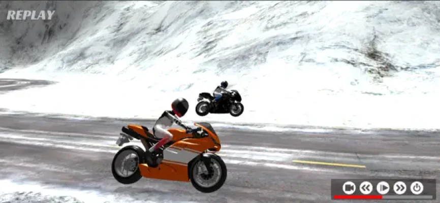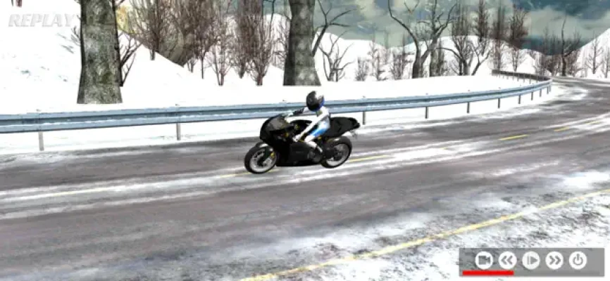 - Simple controls buttons with gas, break ones to do your racing rally dream super sports motorbike motorcycle on racing road around fantastic nice snowy mountain