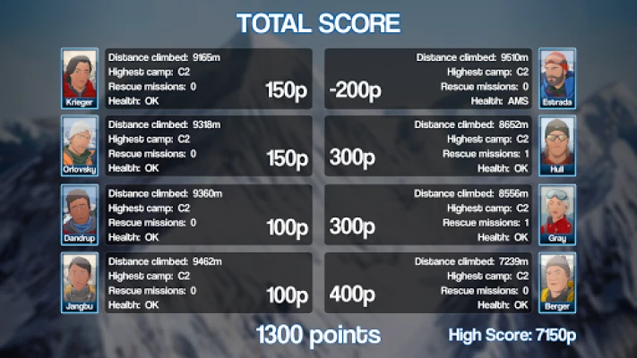 - Simulated concepts include weather, preparation, acclimatization, morale, health, rescuing and much more.