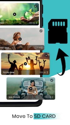 This Rapid Move To SD Card allows you to simply move any files into SD Card. This Mover Files to SD Card can Move your Photos, Videos, Music, Zip Files, and all other download files from your internal memory to your SD card. Move to SD Card App with you no longer have to worry about the low Internal of your smart device with our app, you can transfer files from internal memory to your SD Card memory easily.