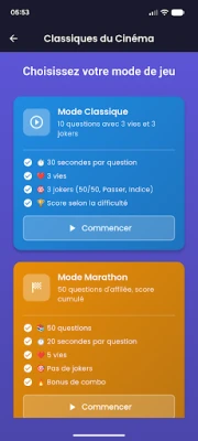 • 3 jokers stratégiques : 50/50, Passer, Indice