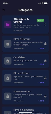 Plongez dans l'univers du 7ème art avec plus de 550 questions passionnantes réparties sur 6 catégories de films. Que vous soyez fan d'action, de science-fiction, d'horreur, de comédie, de classiques ou d'animation, Movie Quiz est fait pour vous !