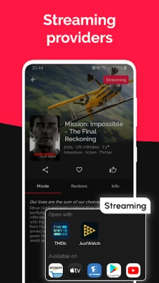 MovieMania shows you which streaming platforms or services offer each movie (rental or purchase). You can find out if a movie is on Netflix, Amazon Prime Video, Disney+ or others in your region.