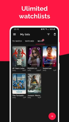 Found an interesting movie? Add it to your personal Watchlist so you remember to watch it later. MovieMana is your movie tracker and diary - keep track of what you want to see and mark movies as Watched once you’ve seen them. Creating unlimited custom lists helps you stay organized.