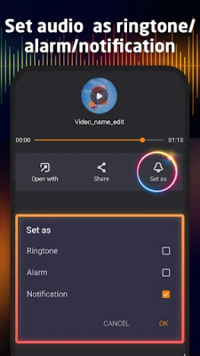 Once you've finished converting video to MP3, you can use the app's ringtone maker to set the music as your phone's ringtone or share the MP3 file with friends. Experience the joy of extracting and converting video to MP3 with the MP3 Converter.