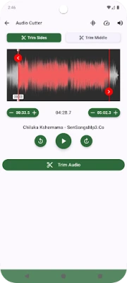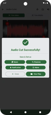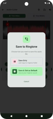 Open mp3 cutter app → Select audio file → Mark start/end points → Preview → Save or set as ringtone!
