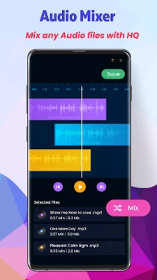 Create new ringtones or new Audio Files by mixing two songs or two audio files playing simultaneously. You can choose two audio files and can mix in a creative way, use the audio songs or files as ringtones.